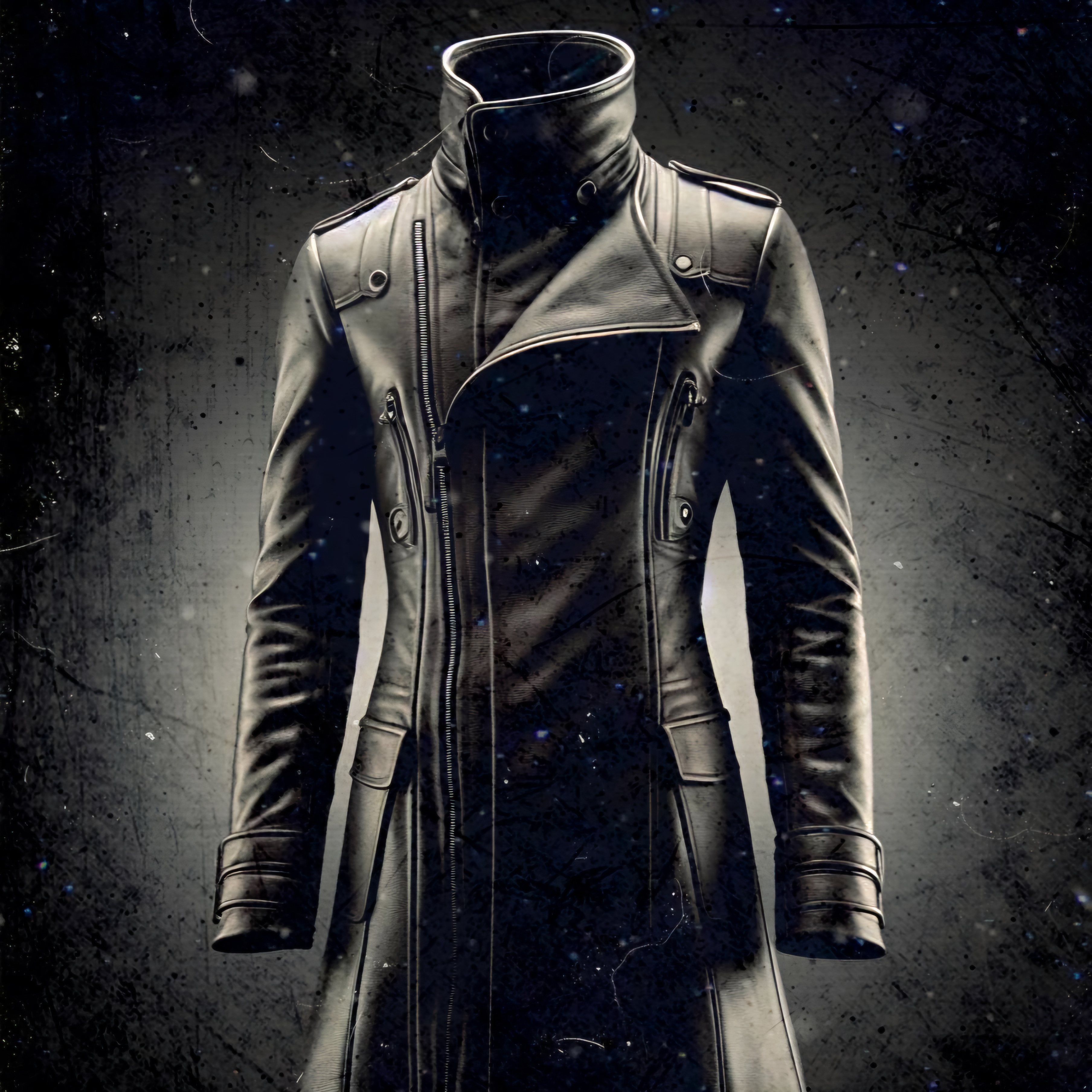 Dieser schön gearbeitete Ledermantel ist mit einer hohen Doppelborde und einer spitzen Kapuzenversehen. Er hält mit seinem dunklen Auftritt seinen Träger bei schlechtem Wetter trocken und warm. Der Name Ashilyight geht auf die Worte Schutz und Strahlung zurück und ist überaus passend, da diese Art der Kleidung vorallem der Abschirmung gegen das Sonnenlicht getragen wird.