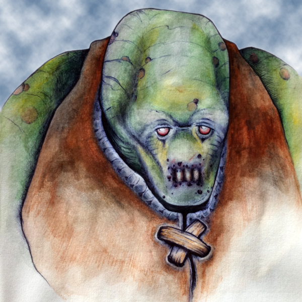 Farbe: Grünliche Haut, kein Haar, rötliche oder violette Augen