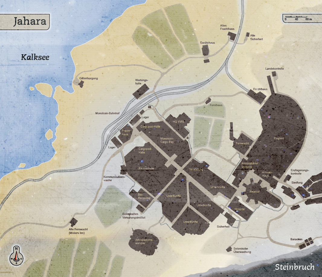 Jahara selbst hat etwa 15.000 Einwohner die auf engstem Raum zusammen leben. Bergarbeiter, Statiker, Farmer, Biologen, Gesteinsforscher, Scouts und unzählige weitere Berufe, von den unterschiedlichsten Spezies ausgeübt, versuchen dem kargen Land nahe des großen Kalksees das wenige abzuringen, was ein Leben auf Bahun lebenswert machen könnte. Doch der Anbau lebensnotwendiger Farmflächen geht schleppend voran. Der große Atmosphärewandler im Süden der Siedlung scheint für die Bedingungen Bahuns nur unzureichend ausgestattet zu sein und das für ihn abgestellte Wartungspersonal hat seine schwierigkeiten mit der tmenischen Technik umzugehen. Tmenische Former sind günstig und die YMG versucht so wenige Credits wie möglich auszugeben. Das Versprechen eines grünen Paradises, welches die PR-Agenturen der Mienengesellschaft vor vielen Standardjahren nutzte, um Siedler für das Bahun-Projekt zu gewinnen wird wohl noch lange nicht in Erfüllung gehen. Ebenso spärlich sind die Abbauergebnisse. Zwar hat man verschiedene Erzadern entdeckt, doch es mangelt an der nötigen Ausrüstung, um in der noch dünnen Atmosphäre arbeiten zu können.